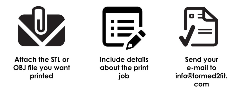 Order a 3D Print FOR 3D PRINT JOBS: FOR DESIGN 3D CAPTURING AND DESIGN SERVICES:For information on having something 3D scanned or our design service, send us an e-mail at info@formed2fit.com or use the form below. Name * First Name Last Name Email Address * Subject * Message * Thank you!